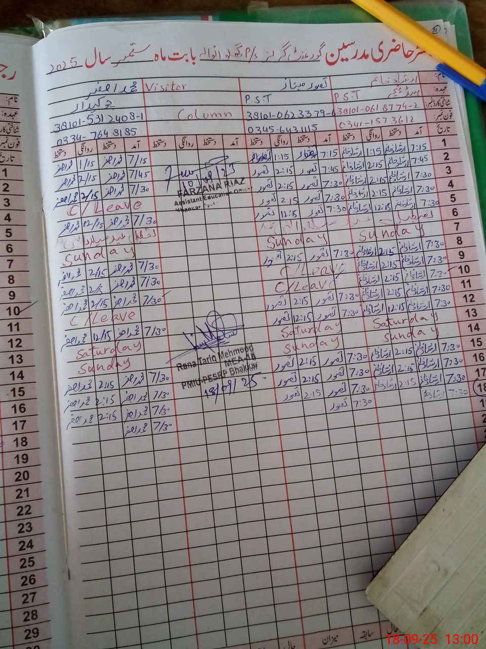 | Name: IR**** FA**** Designation: (School Headmaster's/Headmistress's) PTC/JV Phone/Cell Number: 03**** |