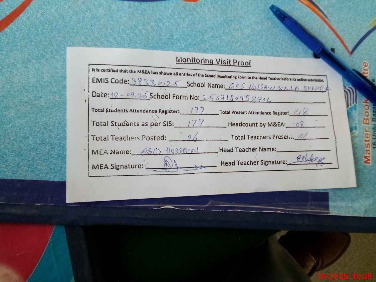 | EMIS Code: 38330125 | Name of School: GES HUSSAIN WALA BHAKRA | |||