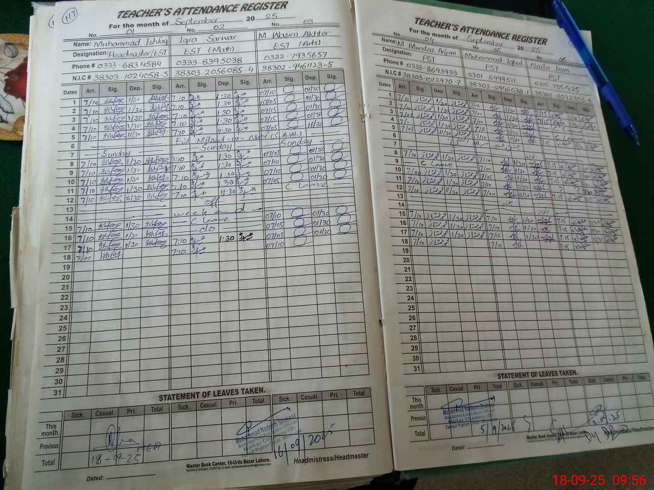 | Name: Mu**** Wa**** Designation: (School Headmaster's/Headmistress's) EST ( Arts Phone/Cell Number: 03**** |