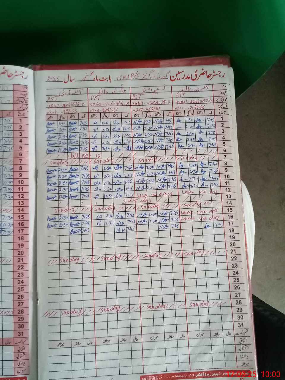 | CNIC | Full Name | Designation | R/C | Absence During Last Calender Month |