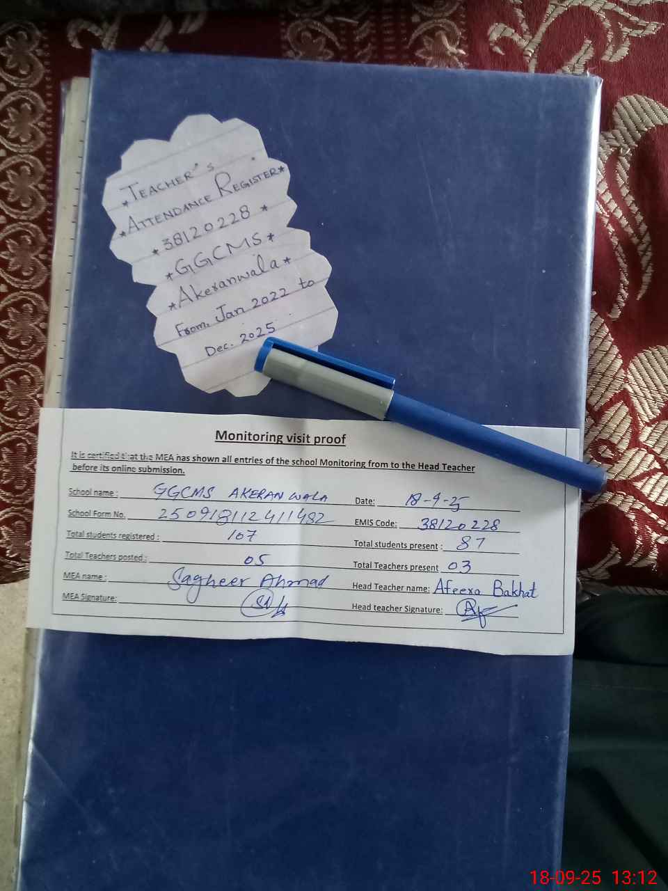 | EMIS Code: 38120228 | Name of School: GGCMS AKERAN WALA NORTH | |||