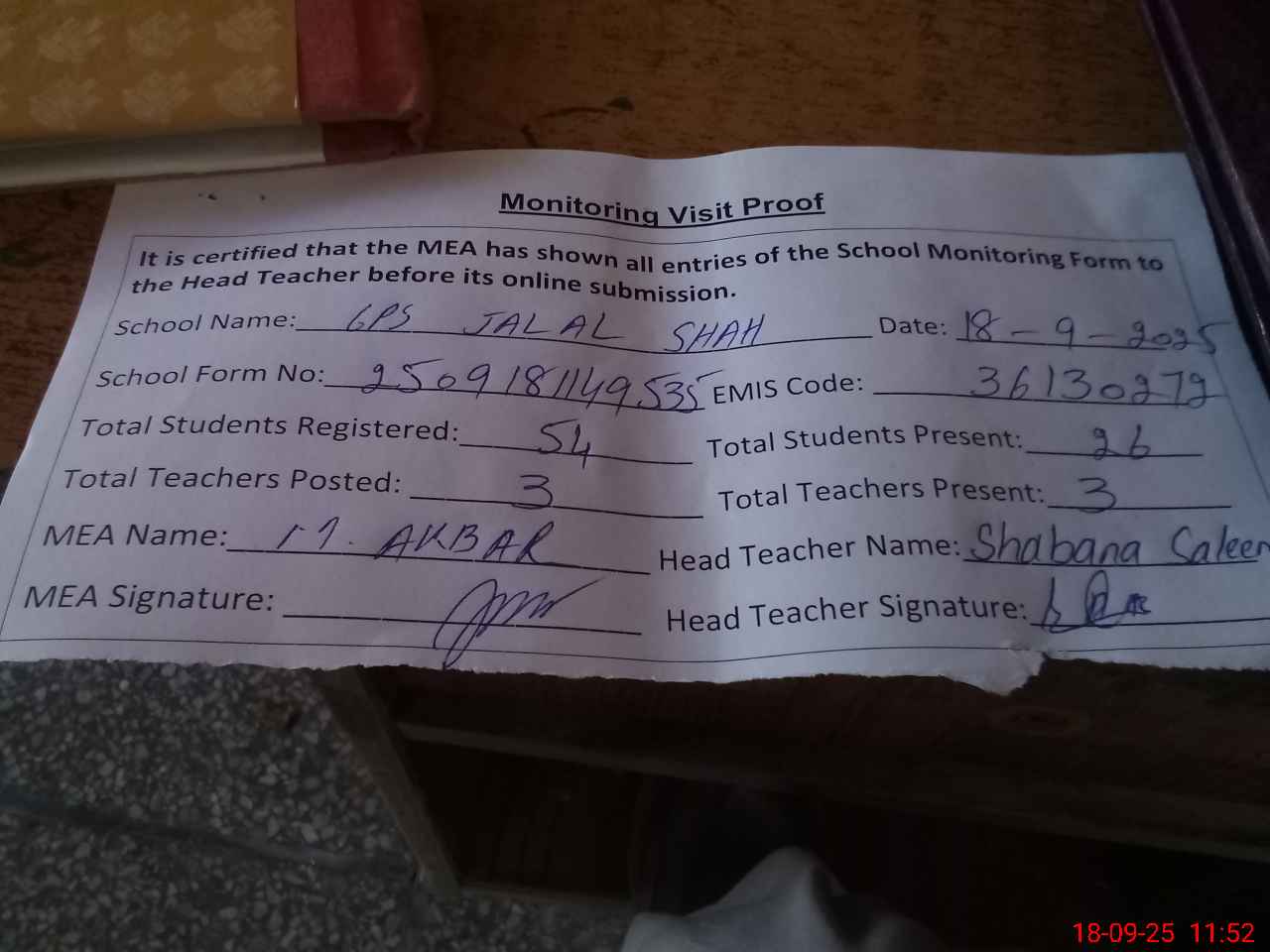 | EMIS Code: 36130272 | Name of School: GPS JALAL SHAH | |||