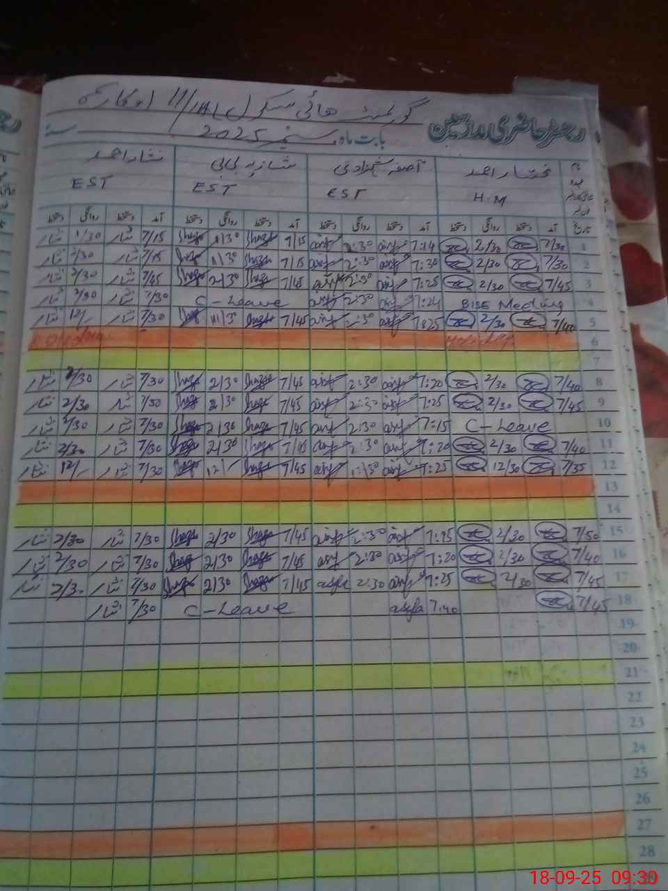 | CNIC | Full Name | Designation | R/C | Absence During Last Calender Month |