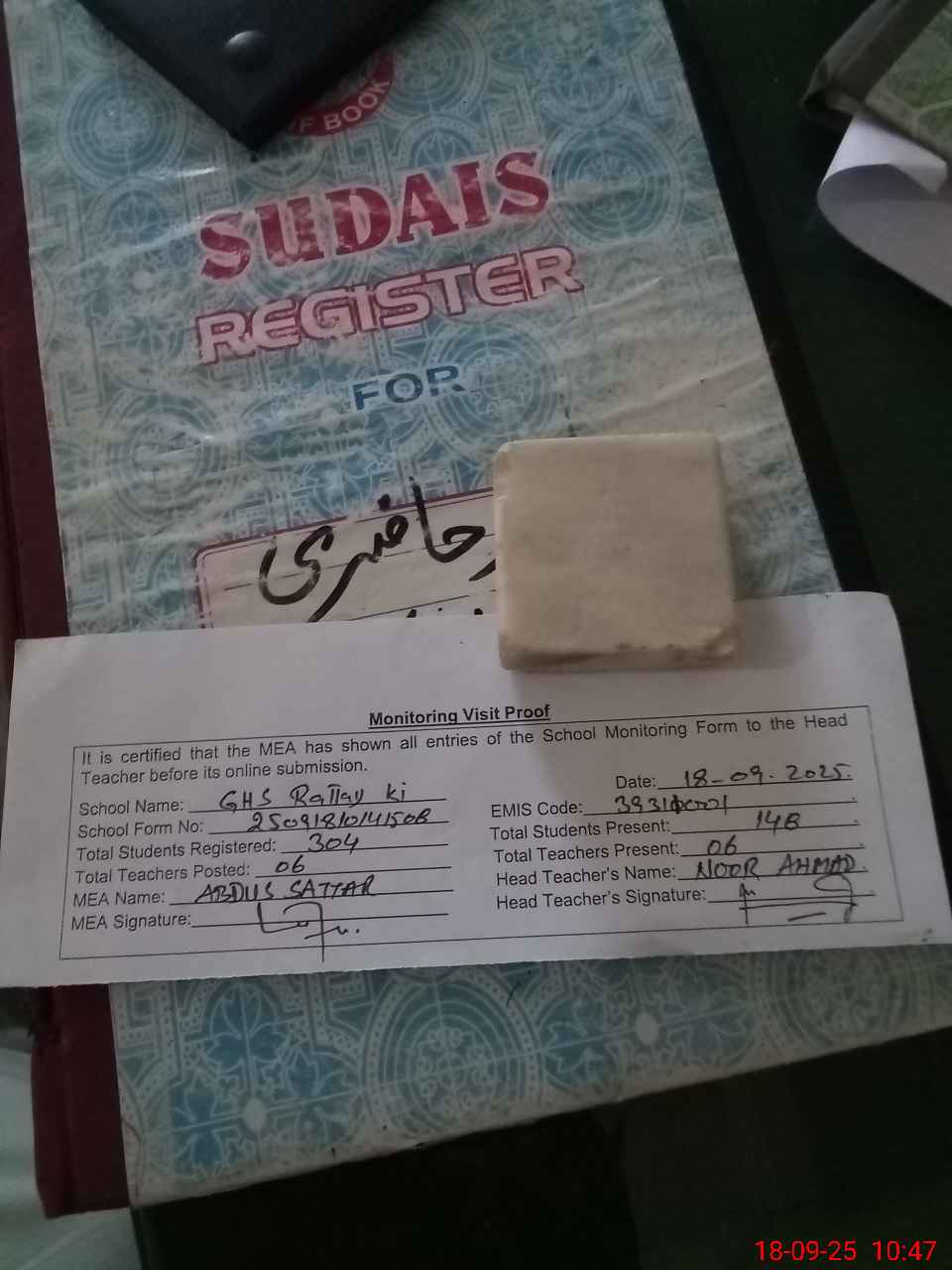 | EMIS Code: 39311001 | Name of School: GHS RATTAKEY | |||