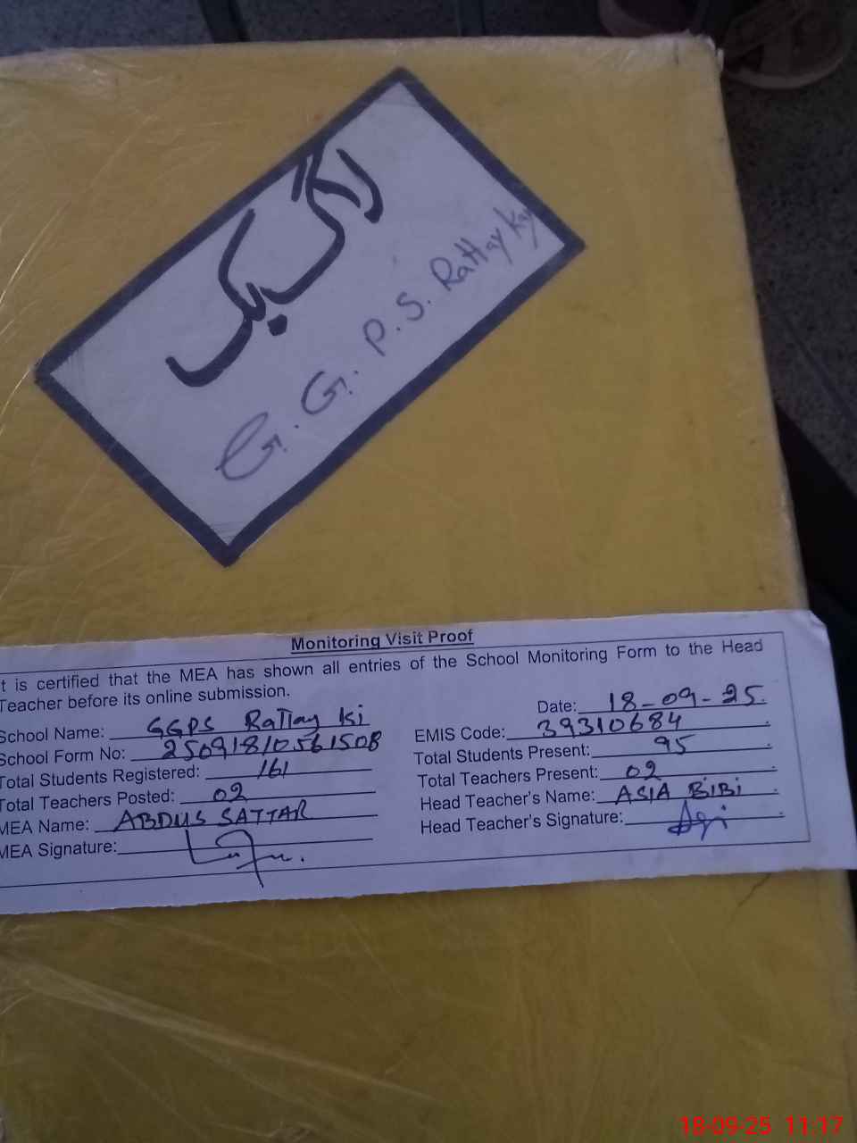 | EMIS Code: 39310684 | Name of School: GGPS RATTAY KAY | |||