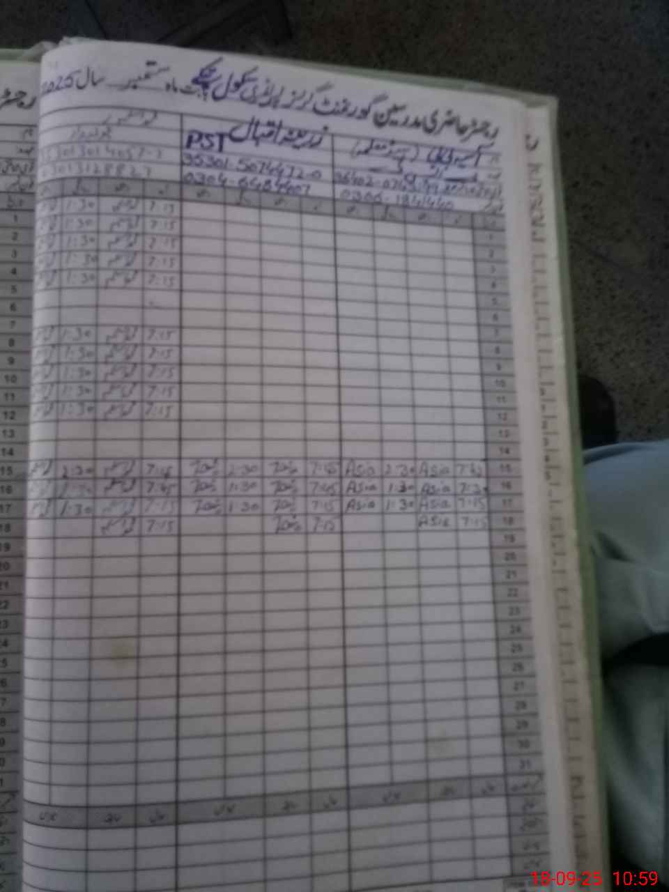| Name: AS**** BI**** Designation: (School Headmaster's/Headmistress's) ESE Phone/Cell Number: 03**** |