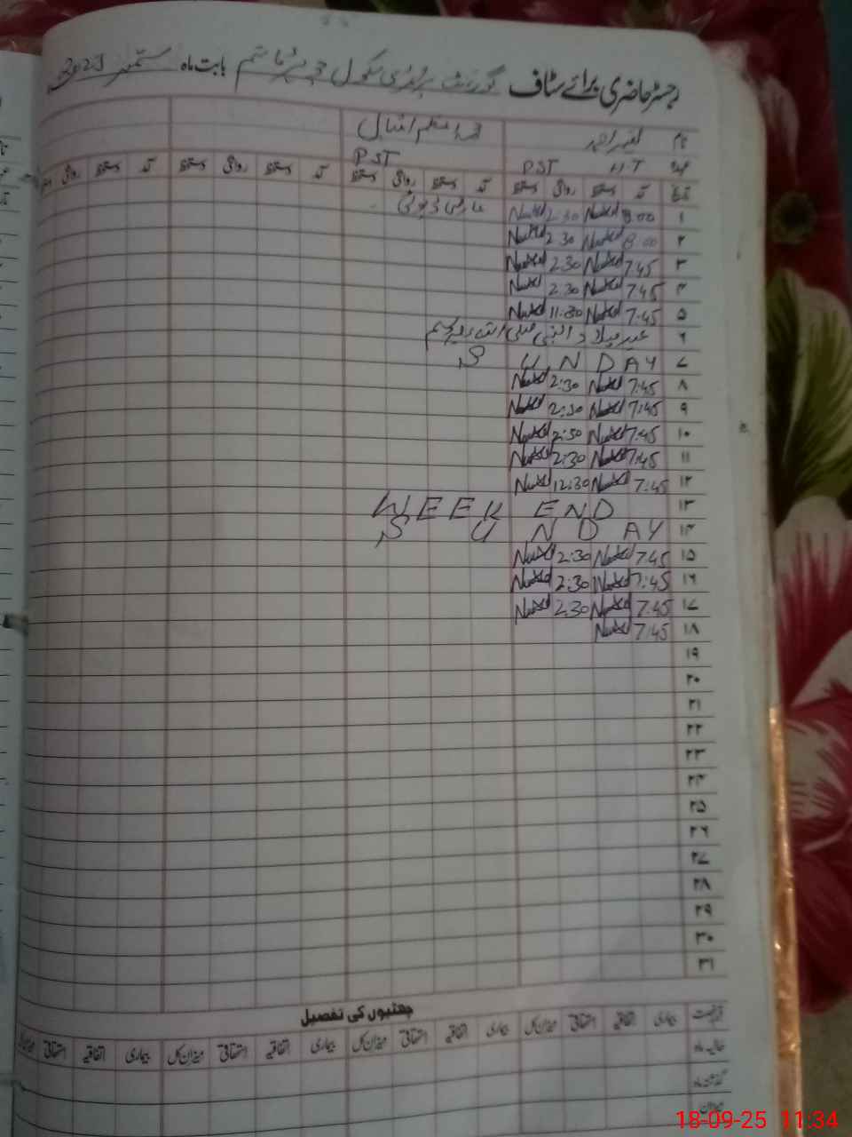 | 35**** | Mu**** Az**** Iq**** | PST | Regular | 0 | 0 | 0 | 0 | 0 | 0 | 0 | 0 | 0 | Absent (Un-Authorized) |