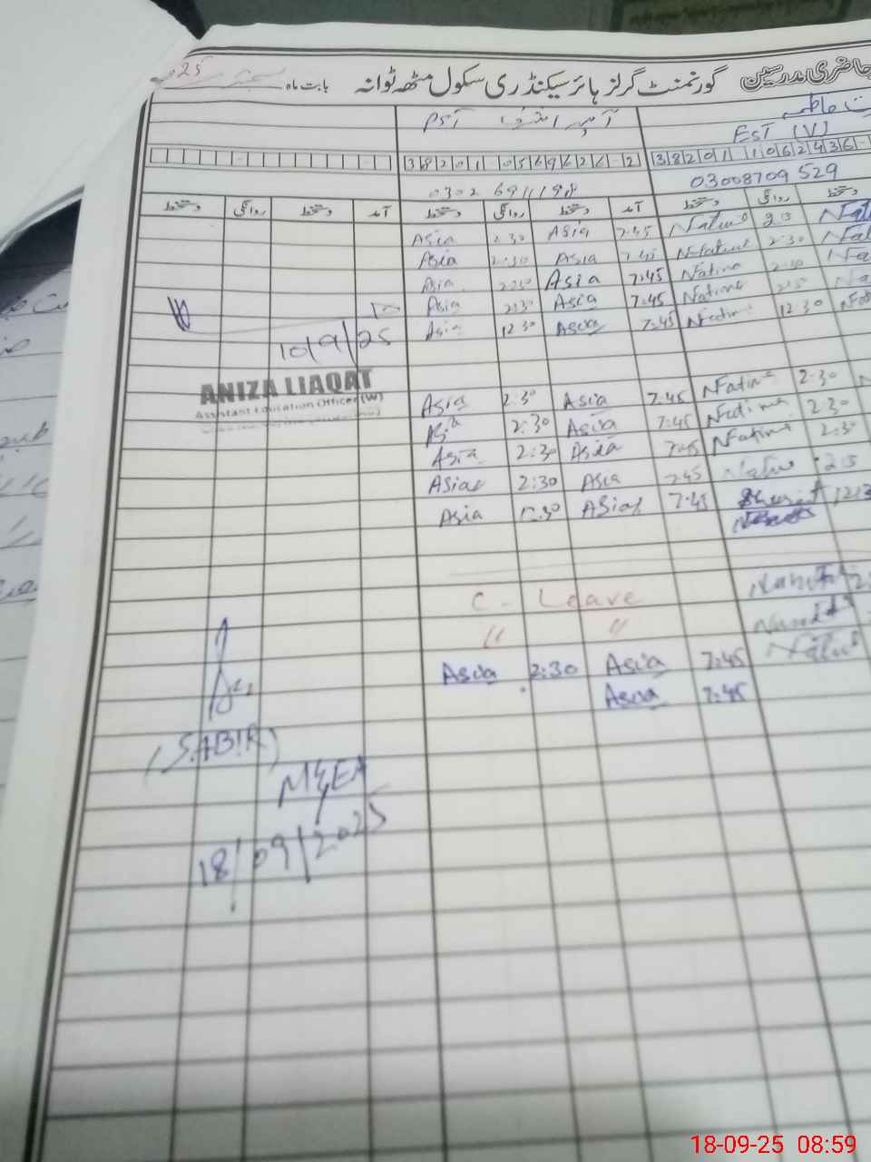 | Name: Fa**** Ya**** Al**** Designation: (School Headmaster's/Headmistress's) Principle Phone/Cell Number: 03**** |