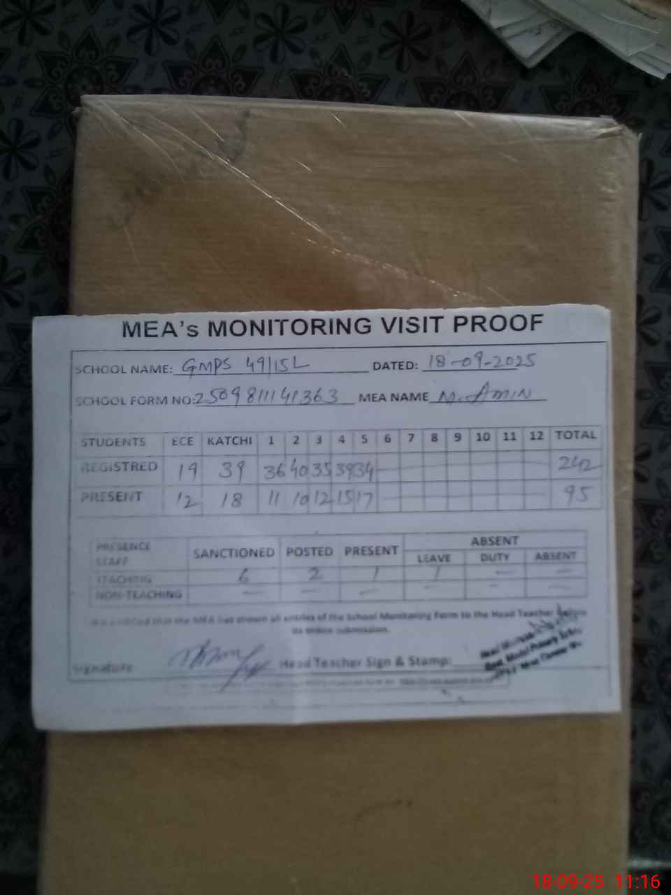 | EMIS Code: 36430282 | Name of School: GMPS 49/15-L, MIAN CHANNU | |||