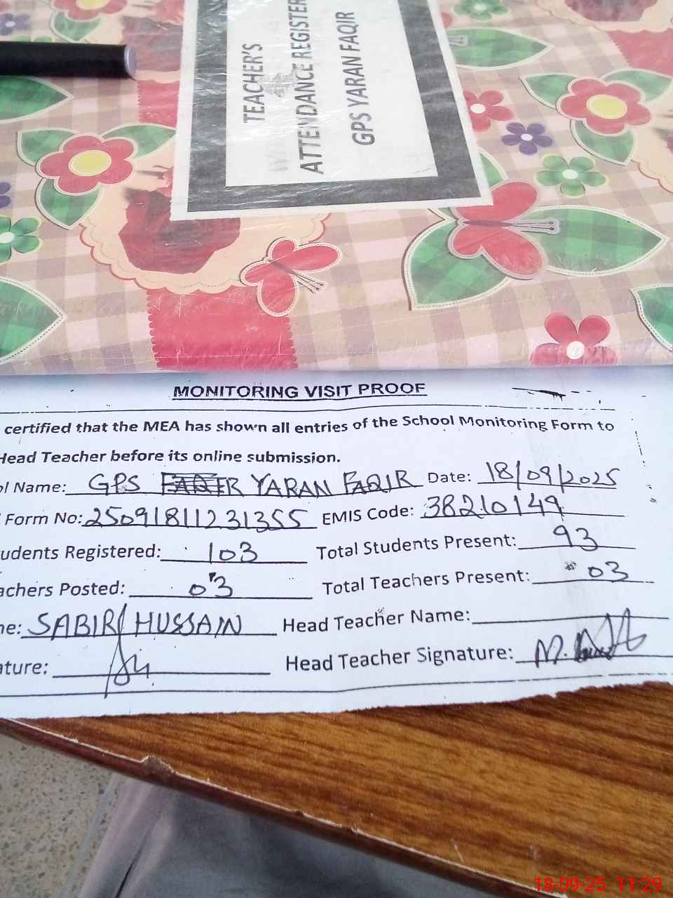 | EMIS Code: 38210149 | Name of School: GPS YARAN FAQIR | |||
