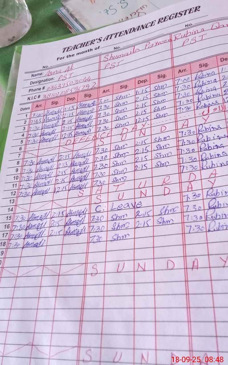| Name: AS**** AL**** Designation: (School Headmaster's/Headmistress's) PTC/JV Phone/Cell Number: 03**** |