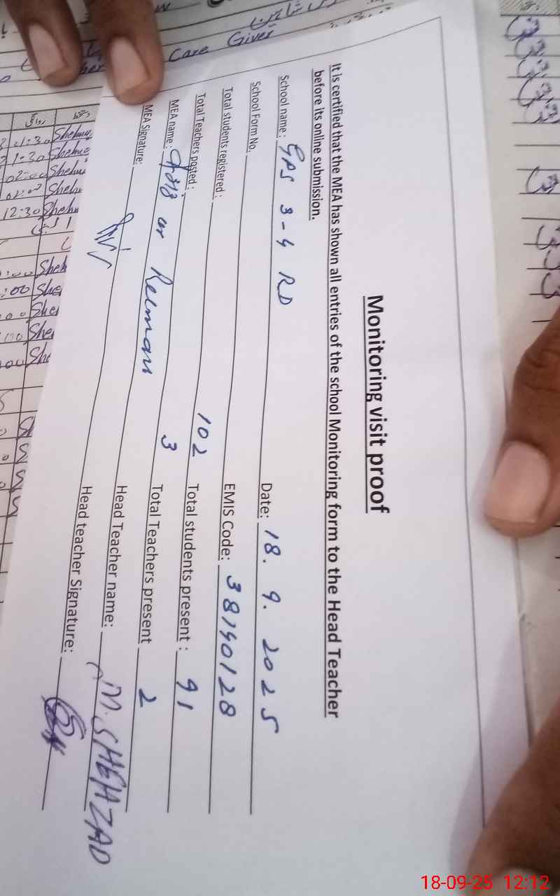 | EMIS Code: 38140128 | Name of School: GPS CHAK NO. 3-4 RAKH DULLE WALA | |||