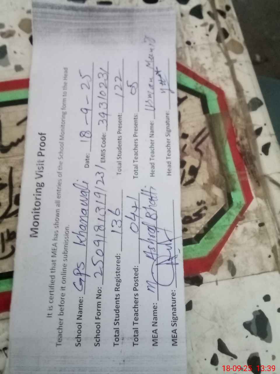 | EMIS Code: 39310231 | Name of School: GPS KHANAN WALI HUJRA | |||