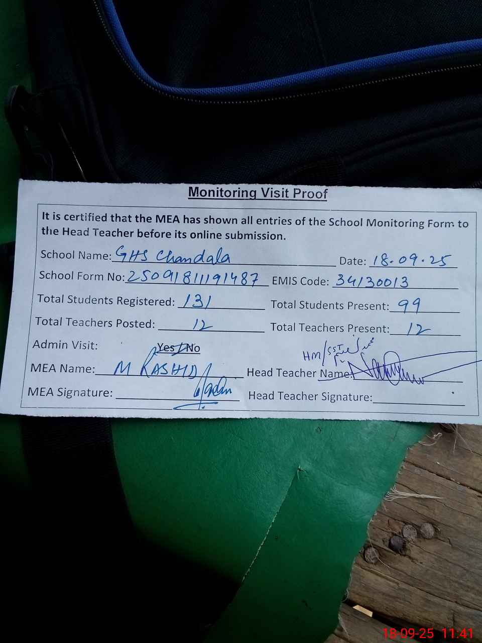 | EMIS Code: 34130013 | Name of School: GHS CHANDALA | |||