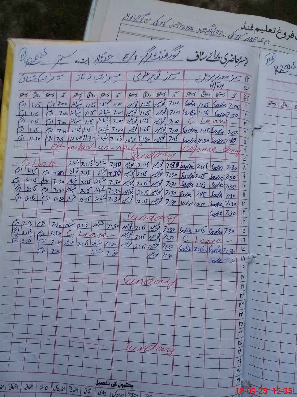 | 34**** | Sa**** Ba**** | 2 | 2 | 0 | 0 | 0 | 0 | 0 | 0 | 0 | 0 | 0 | Absent (Un-Authorized) |