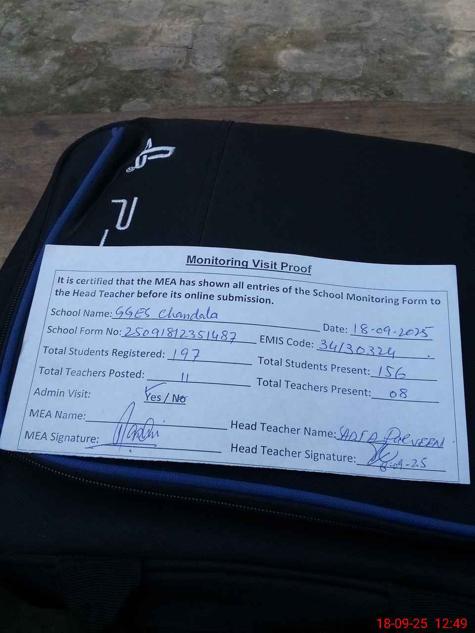 | EMIS Code: 34130324 | Name of School: GGES CHANDALA | |||