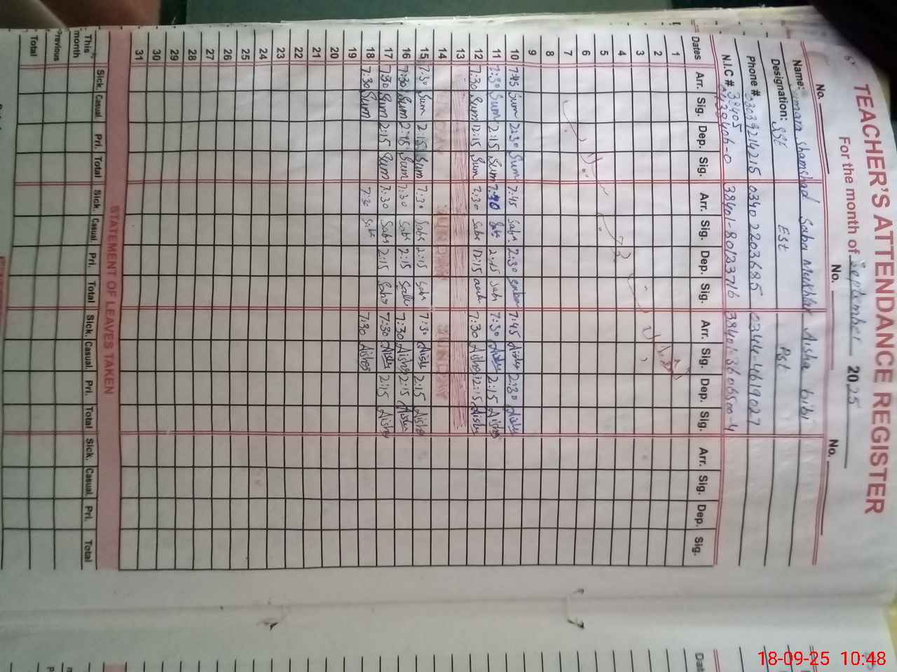 | Name: SU**** SH**** Designation: (School Headmaster's/Headmistress's) SSE ARTS Phone/Cell Number: 03**** |