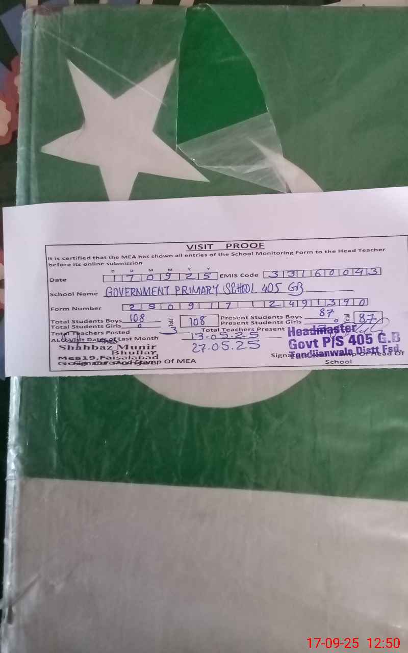| EMIS Code: 33160043 | Name of School: GPS CHAK 405 GB TANDLIANWALA FSD | |||