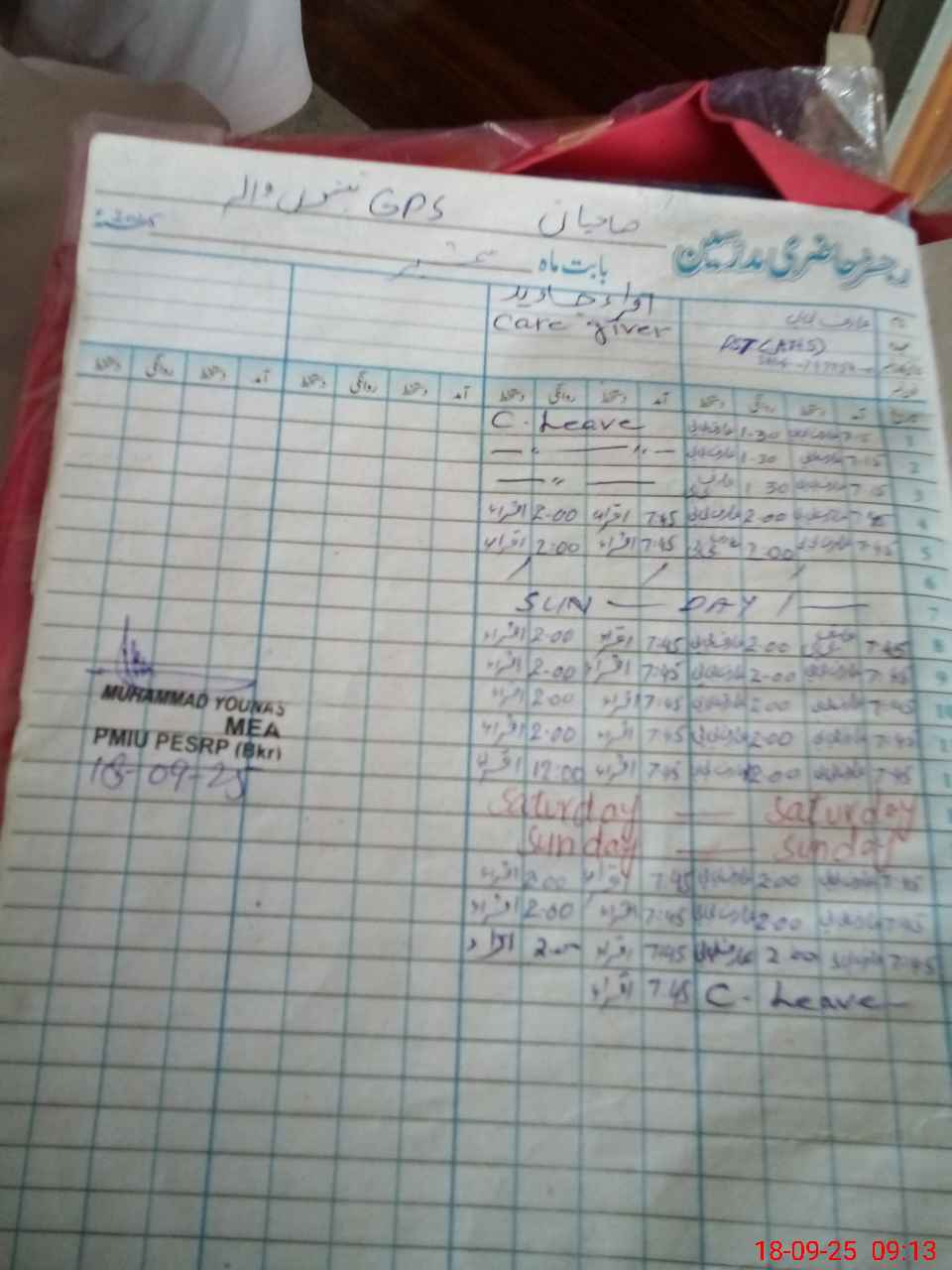 | CNIC | Full Name | Designation | R/C | Absence During Last Calender Month |