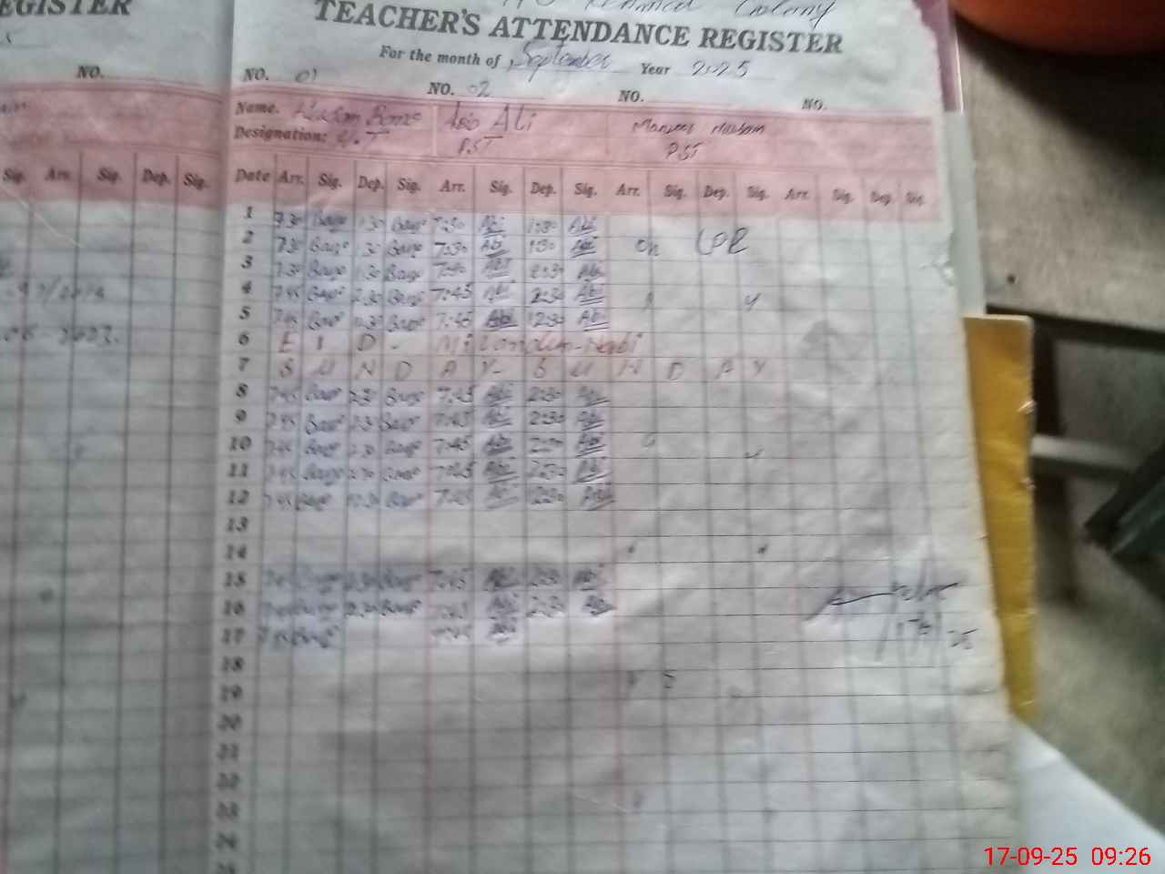 | CNIC | Full Name | Designation | R/C | Absence During Last Calender Month |