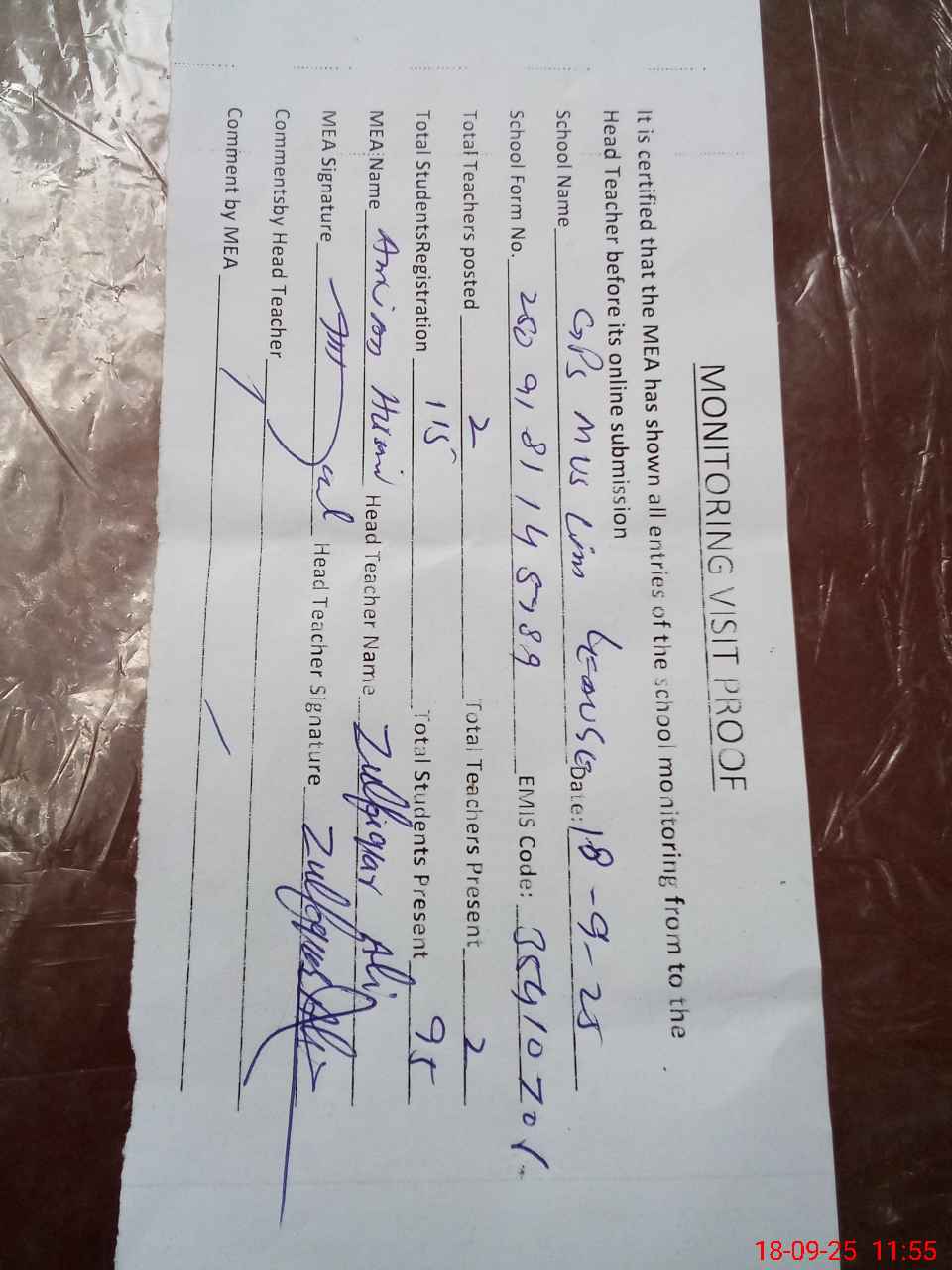 | EMIS Code: 35410706 | Name of School: GPS MUSLIM LEAGUE VILLAGE | |||