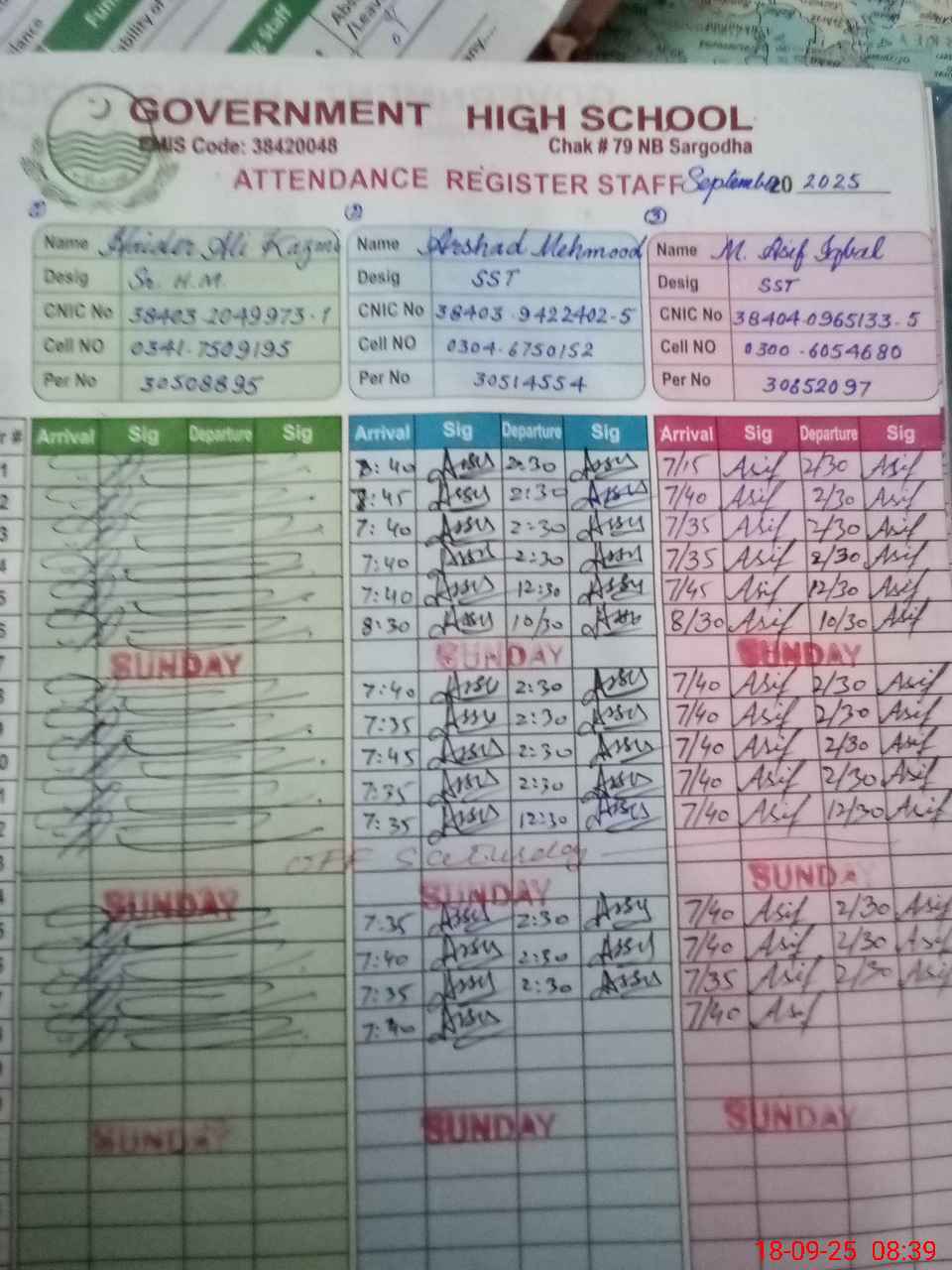 | Name: HA**** AL**** KA**** Designation: (School Headmaster's/Headmistress's) Sr. HEADMASTER Phone/Cell Number: 03**** |