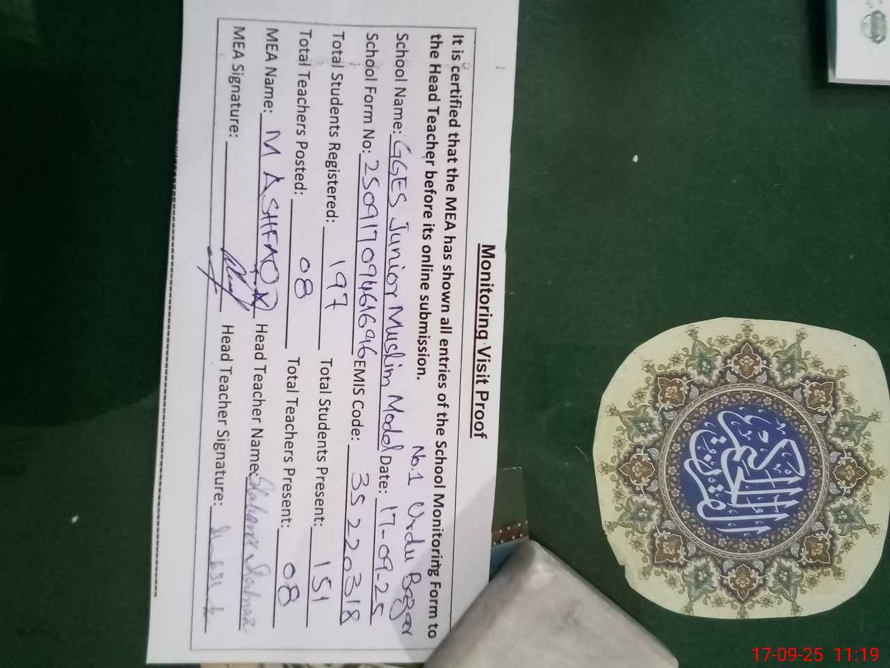 | EMIS Code: 35220318 | Name of School: GGES JUNIOR MUSLIM MODEL NO.1 URDU BAZAR | |||