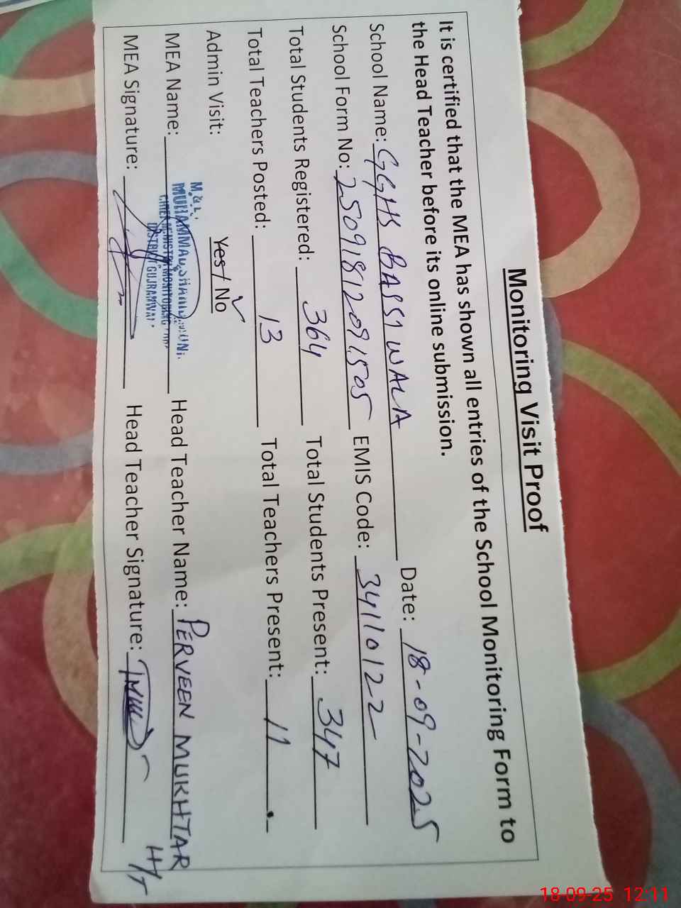 | EMIS Code: 34110122 | Name of School: GGHS BASSI WALA | |||