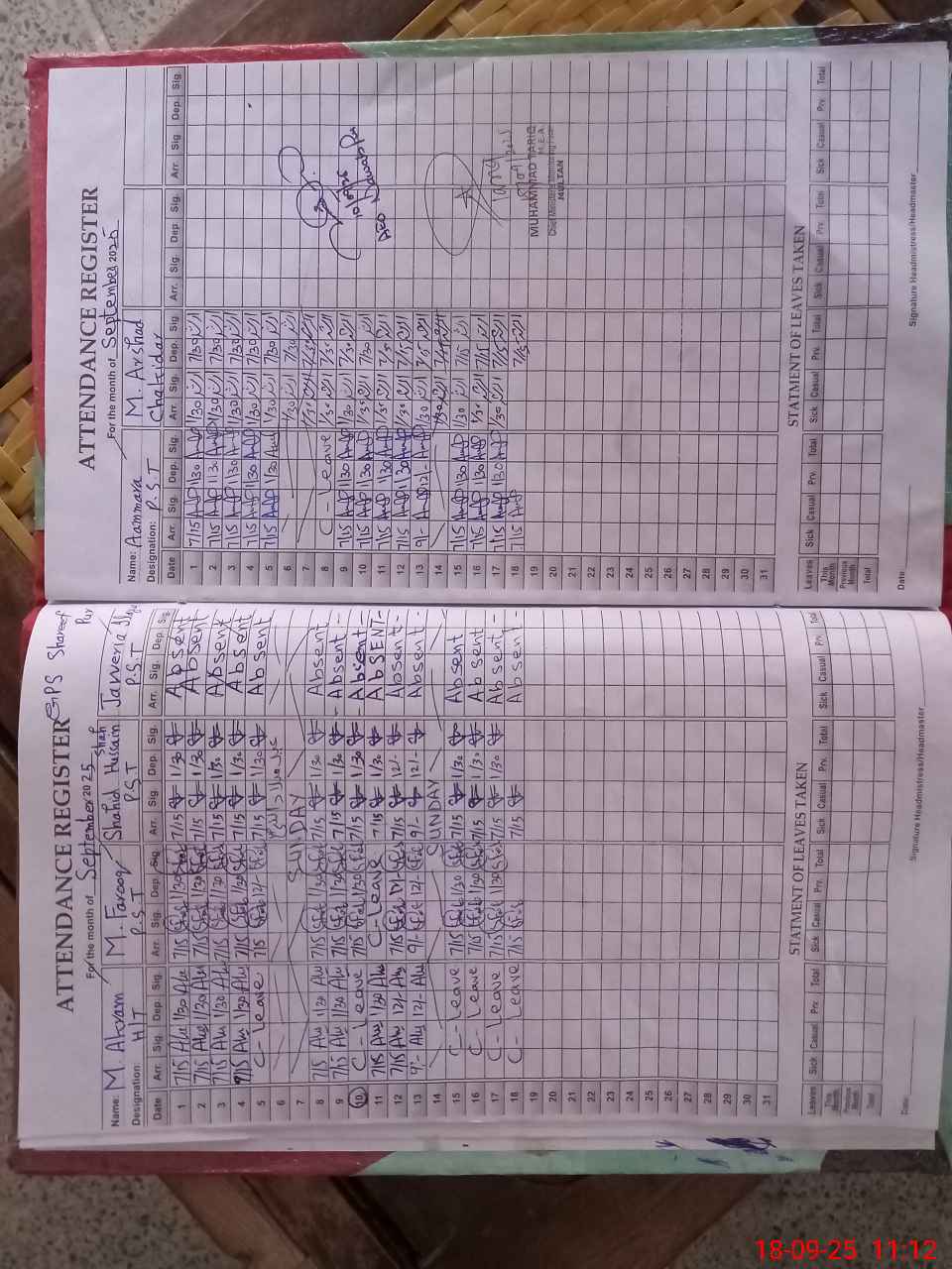 | Remarks (Use Separate Page if Required): PST JAWERIA ILYAS ABSENT SINCE 1ST SEPTEMBER 2025 PST SHAHID HUSSAIN SHAH POSTED IN THIS SCHOOL SINCE 31ST JANUARY 2025 BUT HIS NAME NOT HELD IN TEACHERS LIST STUDENTS ATTENDENCE LIST OF PREVIOUS SESSION | |||||