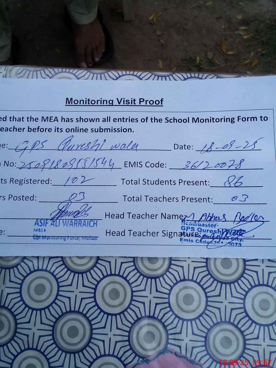 | EMIS Code: 36120078 | Name of School: GPS QURESHI WALA P.O AGHAR KHANI TEH SHUJABAD | |||