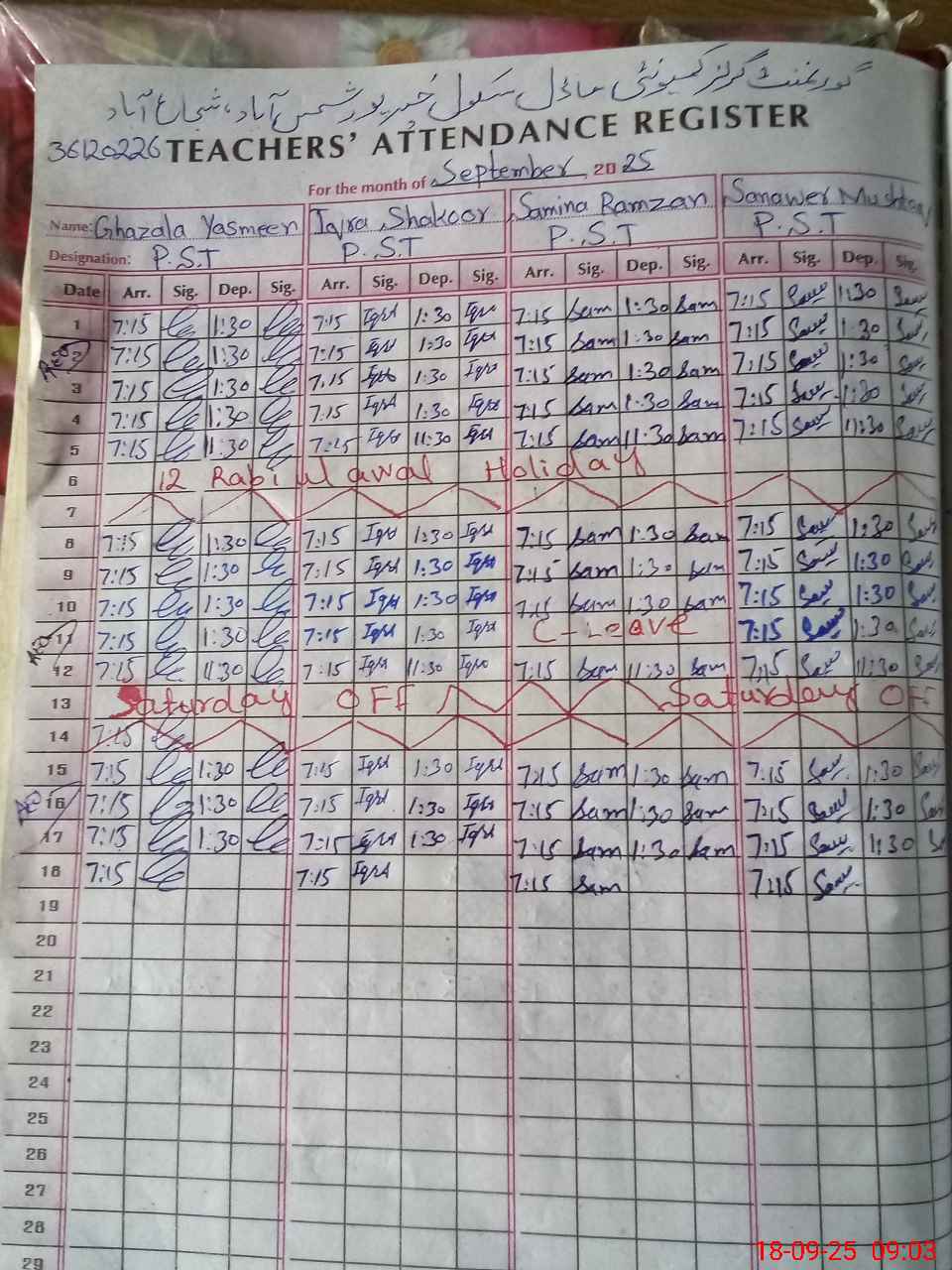 | Name: GH**** YA**** Designation: (School Headmaster's/Headmistress's) PST INCHARGE Phone/Cell Number: 03**** |