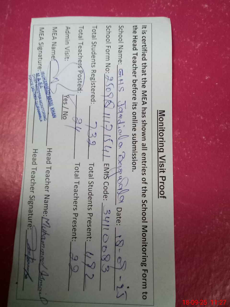| EMIS Code: 34110083 | Name of School: GHS JANDIALA BAGH WALA | |||