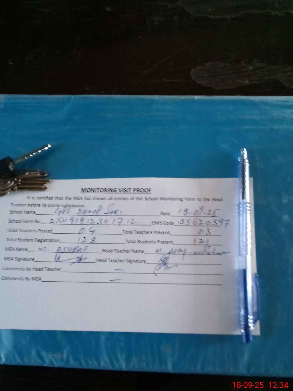 | EMIS Code: 35620597 | Name of School: GPS DHOOP SARI CHAK NO.78 | |||