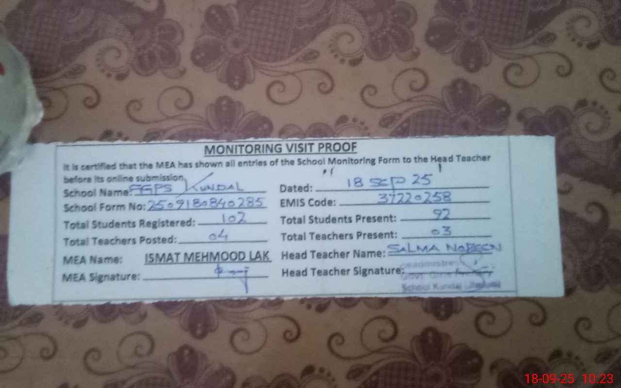 | EMIS Code: 37220258 | Name of School: GGPS KUNDAL | |||