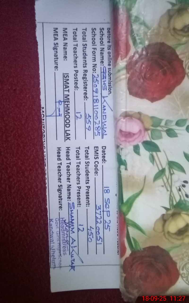 | EMIS Code: 37220051 | Name of School: GGHS KANDWAL | |||