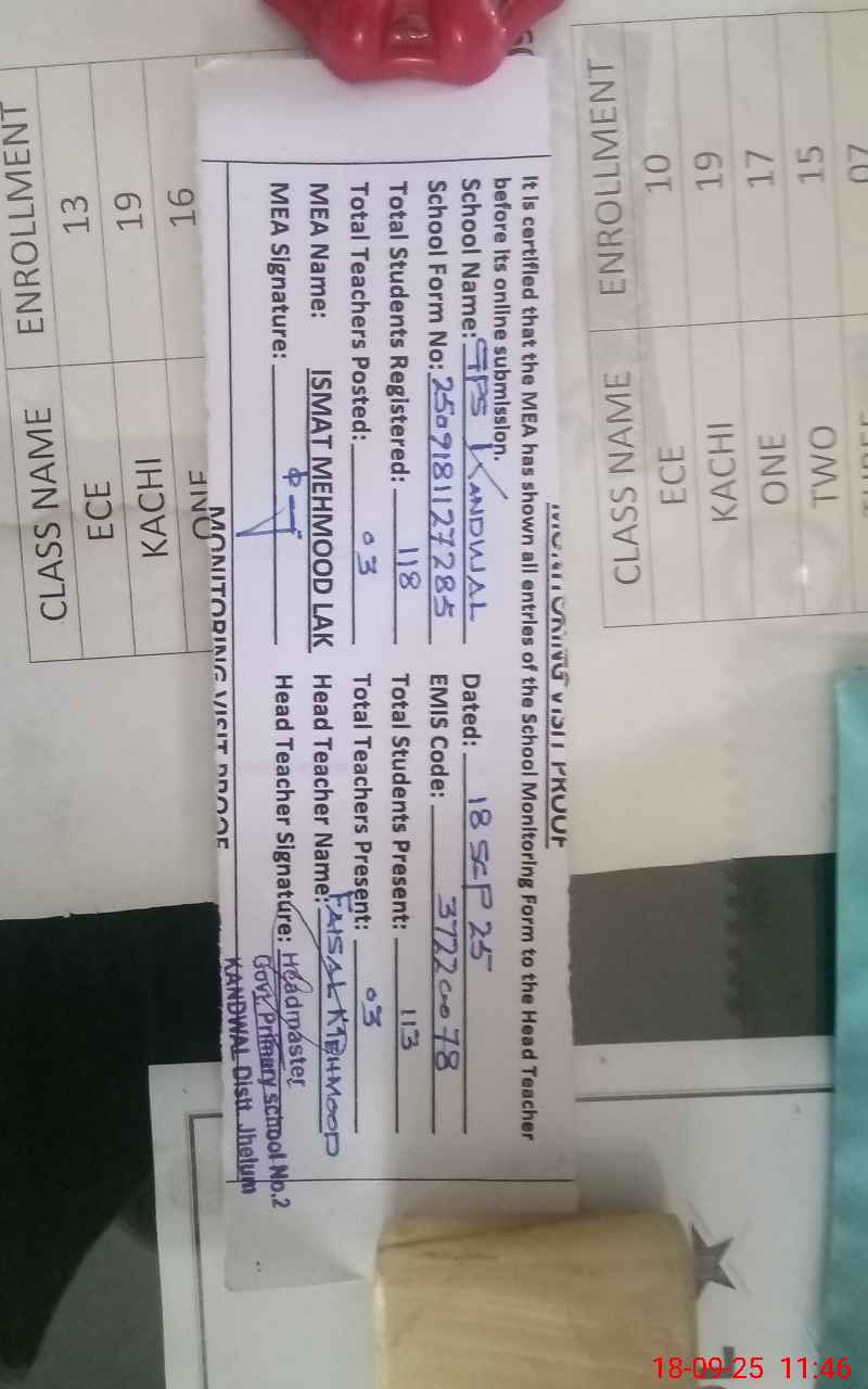 | EMIS Code: 37220078 | Name of School: GPS KANDWAL NO.2 | |||