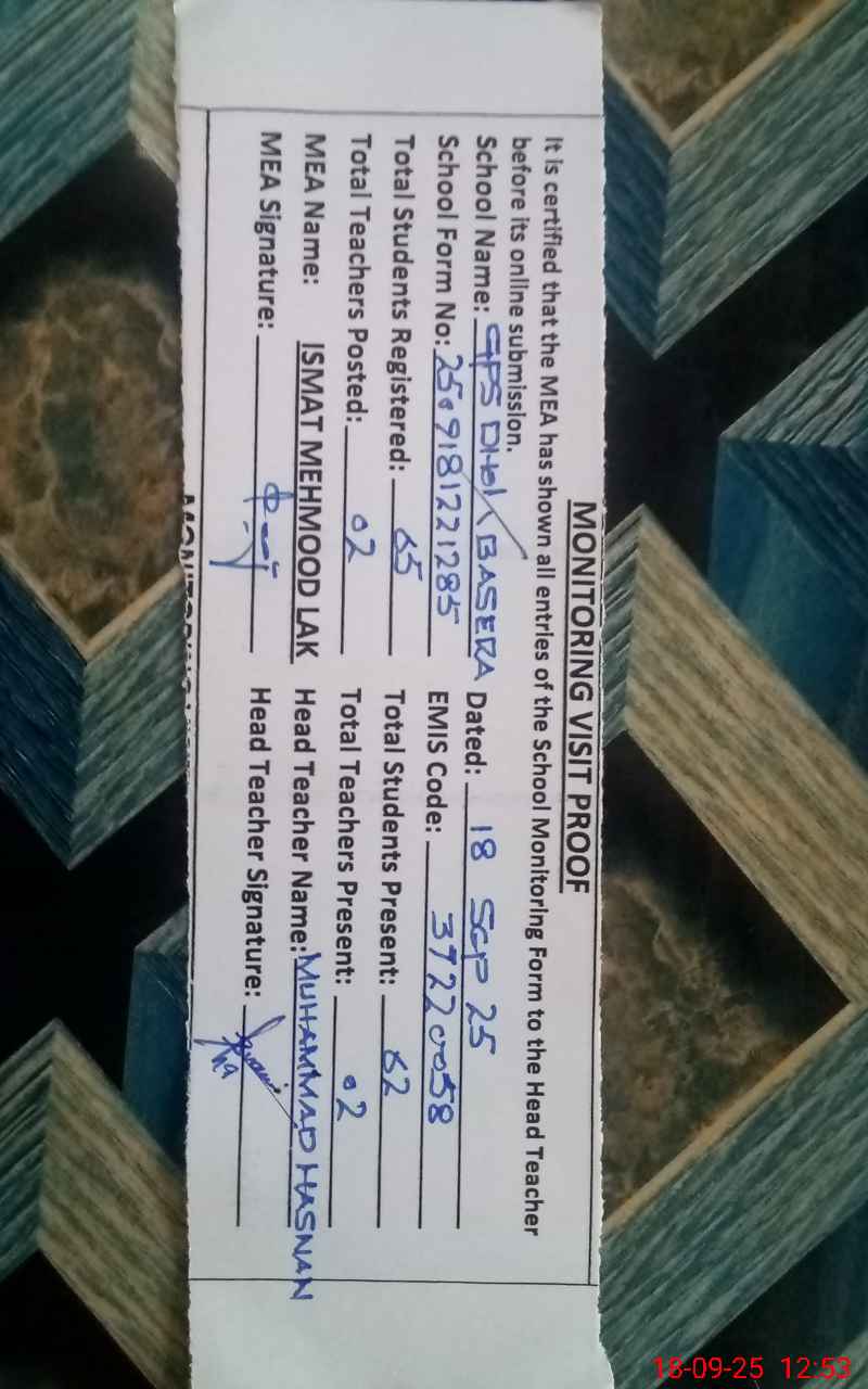 | EMIS Code: 37220058 | Name of School: GPS DHOK BASERA | |||