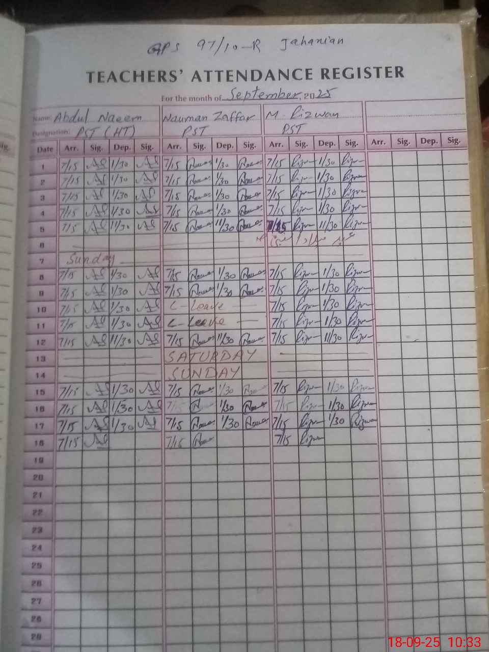 | CNIC | Full Name | Designation | R/C | Absence During Last Calender Month |