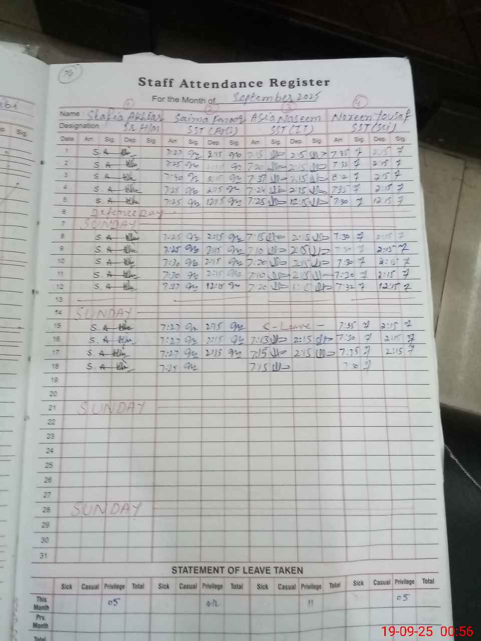 | Name: SH**** AK**** Designation: (School Headmaster's/Headmistress's) Senior Headmistress Phone/Cell Number: 03**** |