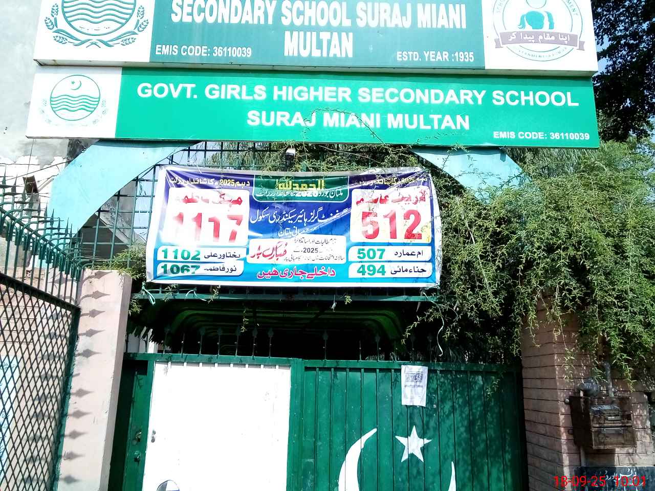 | EMIS Code: 36110039 | Name of School: GGHSS SURAJ MIANI MULTAN | |||