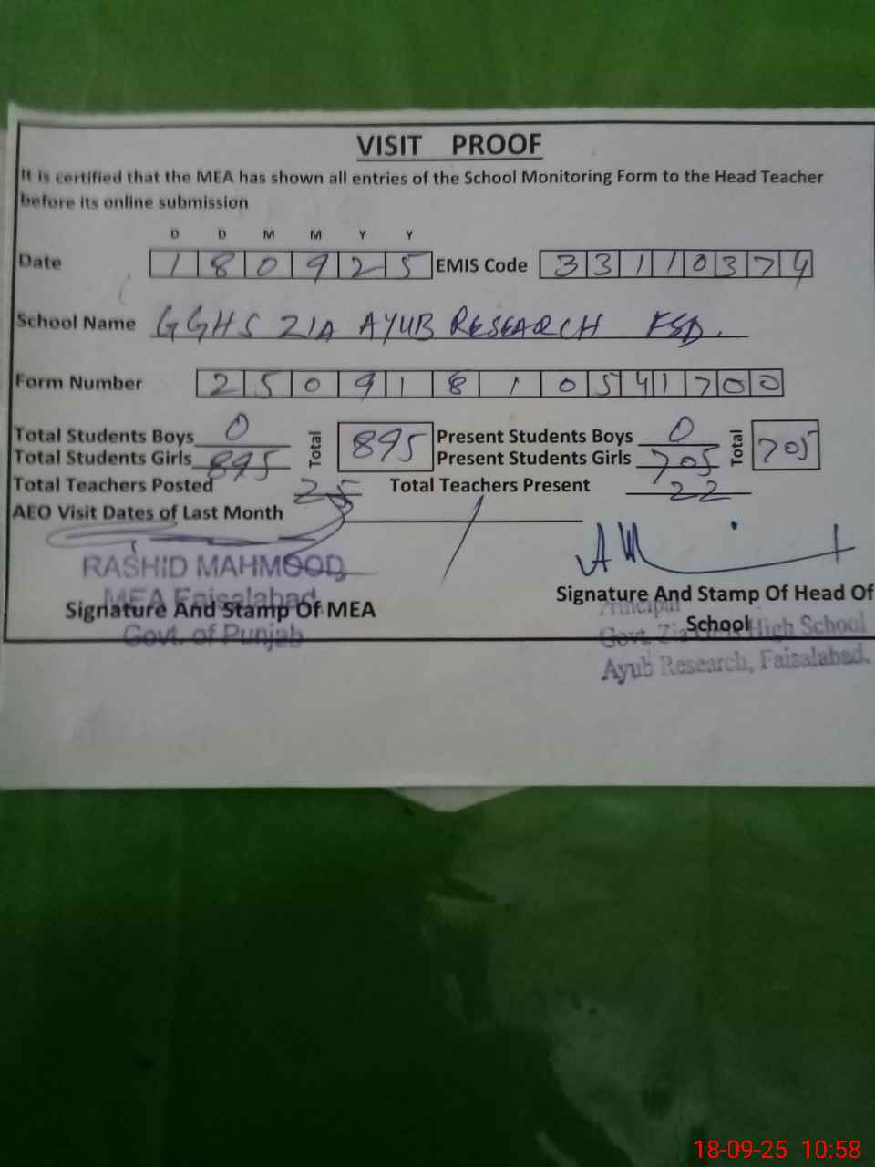 | EMIS Code: 33110374 | Name of School: GGHS ZIA AYUB RESEARCH FAISALABAD | |||