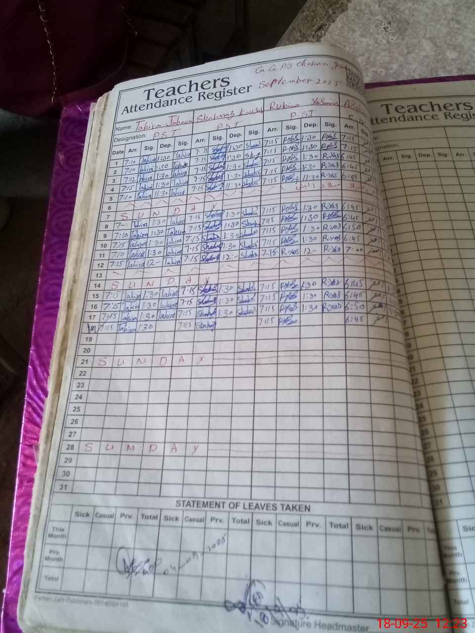 | Name: Ta**** Ja**** Designation: (School Headmaster's/Headmistress's) PST Phone/Cell Number: 03**** |