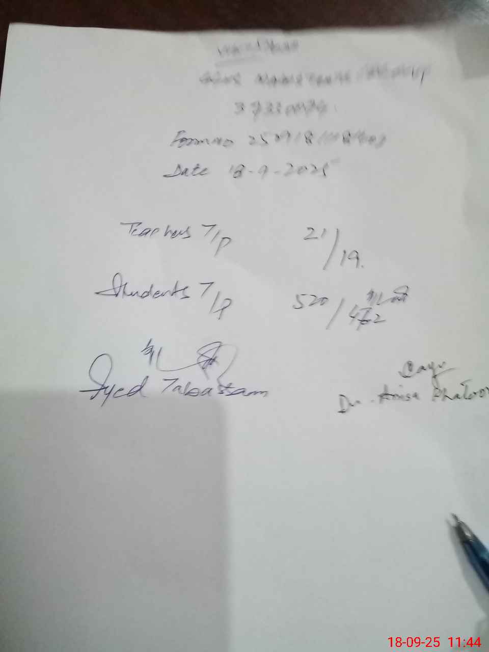 | Certified that this School was Inspected by the Undersigned MEA/DMO Today and the Information Stated Above is as Per Record. | |||||