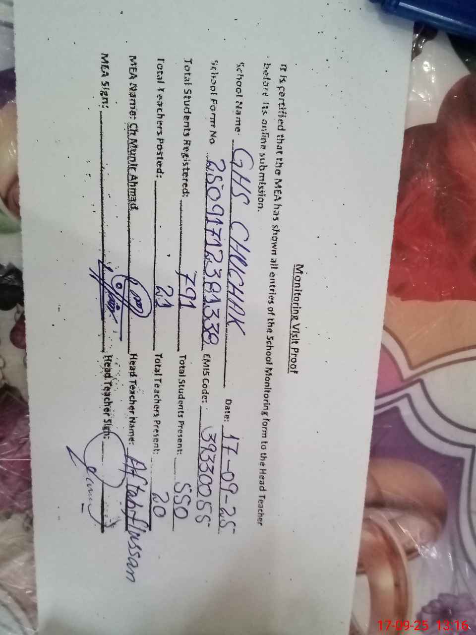 | EMIS Code: 39330055 | Name of School: GHS CHUCHAK | |||