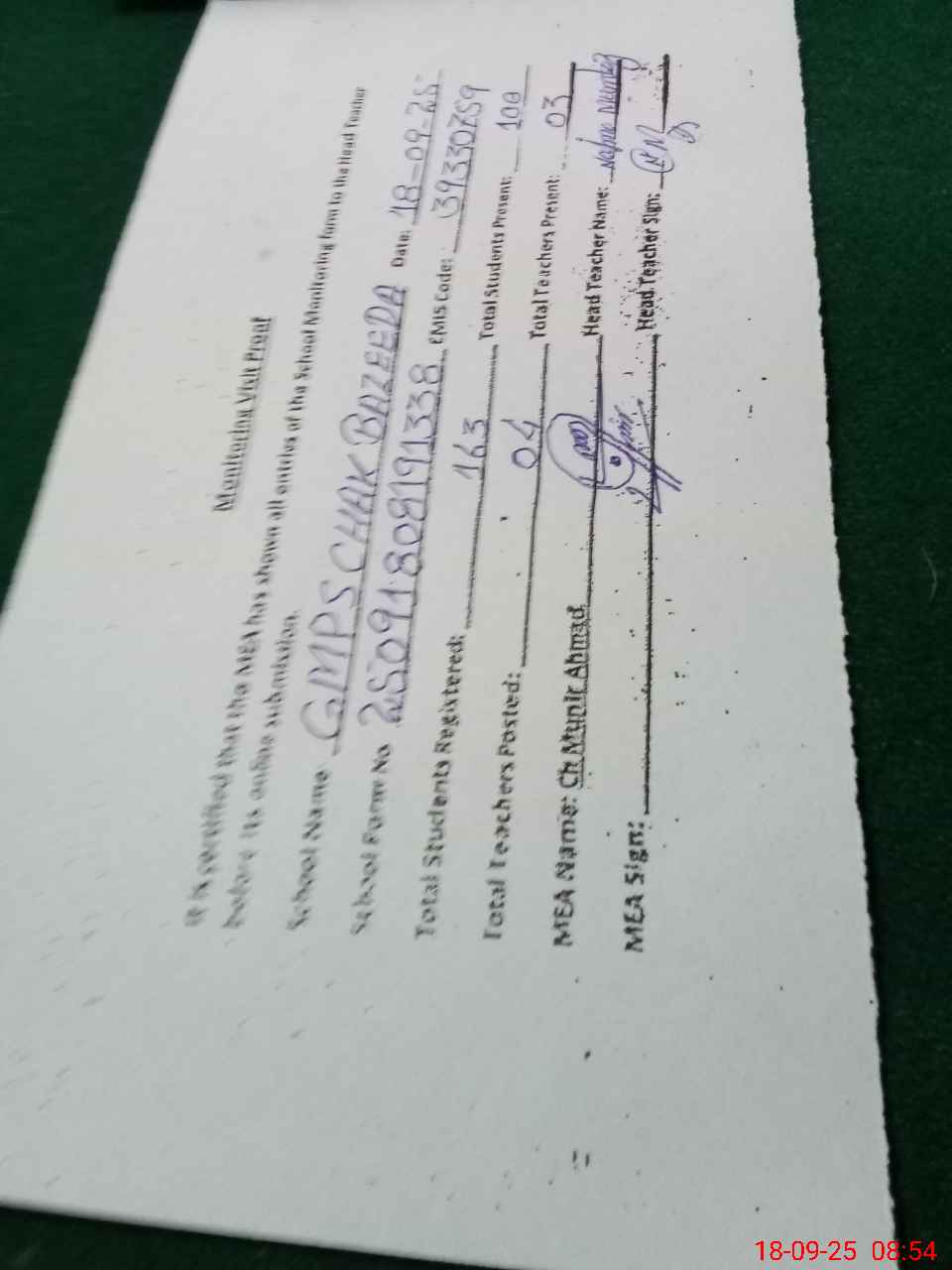 | EMIS Code: 39330759 | Name of School: GMPS CHAK BAZEEDA | |||