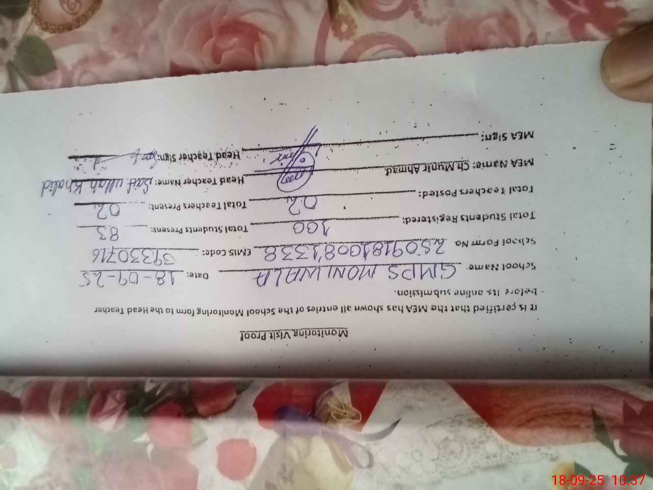 | EMIS Code: 39330716 | Name of School: GMPS MONI WALA | |||