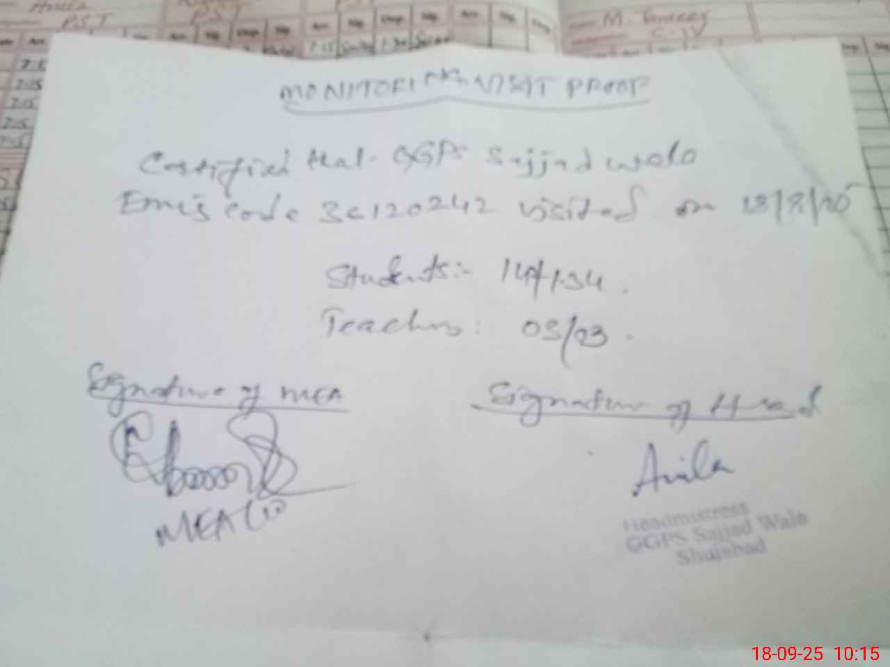 | EMIS Code: 36120242 | Name of School: GGPS SAJAD WALA SHUJABAD DISTT. MULTAN | |||