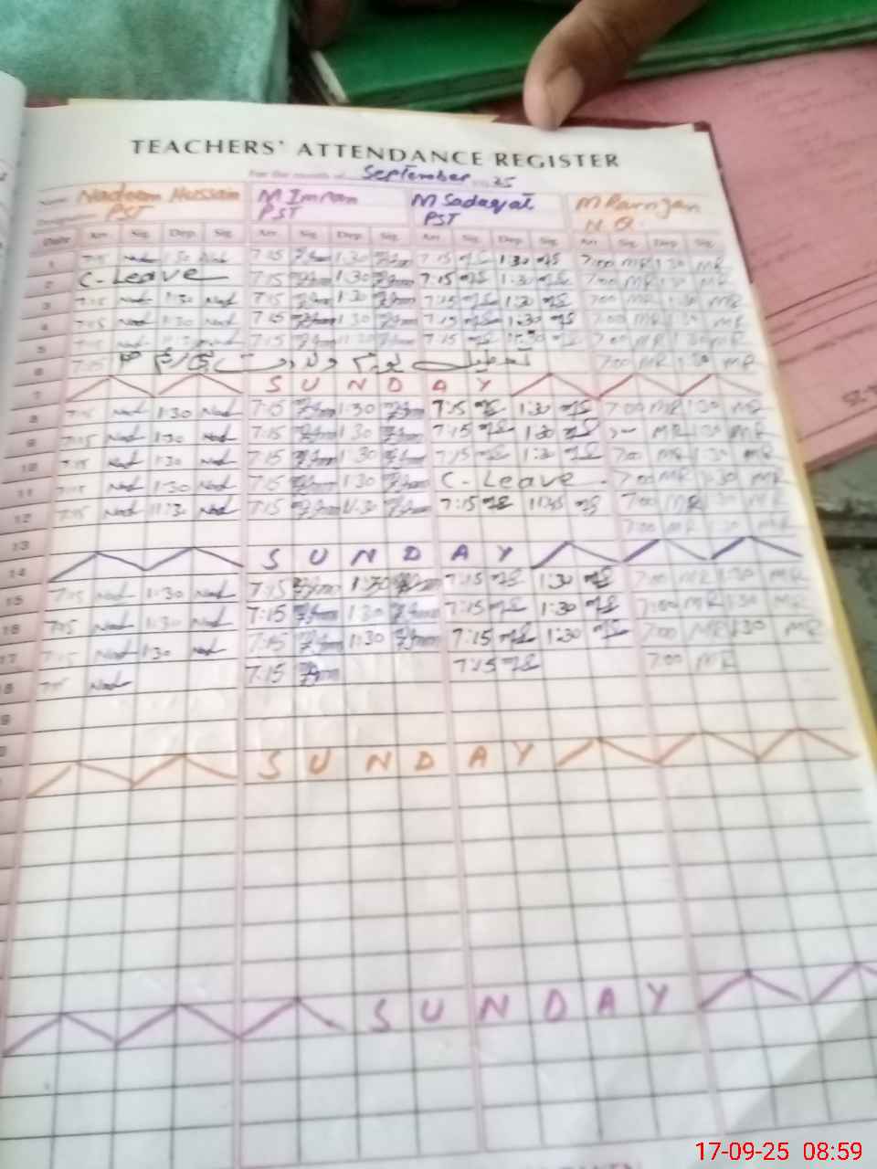 | CNIC | Full Name | Designation | R/C | Absence During Last Calender Month |