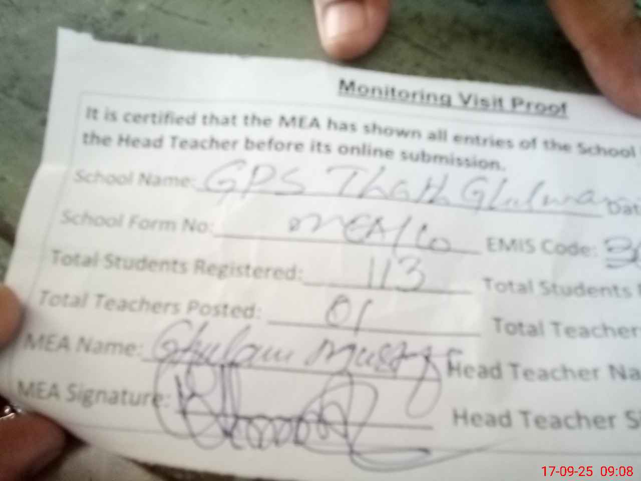 | EMIS Code: 36120113 | Name of School: GPS THATH GHALWAN P/O THATH GHAWAN | |||