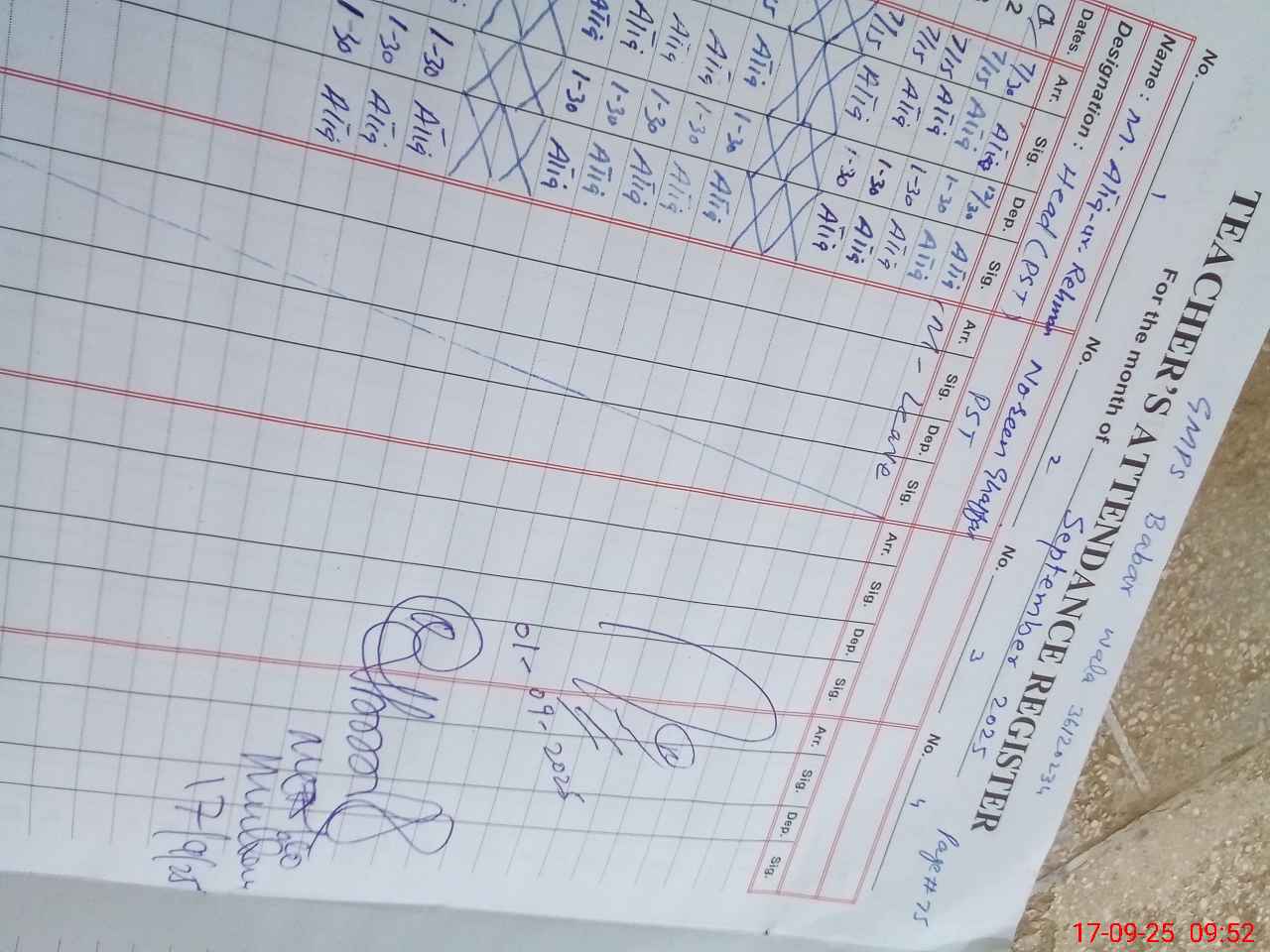 | Name: M.**** URRE**** Designation: (School Headmaster's/Headmistress's) PST Phone/Cell Number: 03**** |
